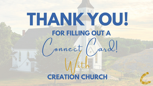 Thanks so much for filling out a Connect Card with Creation Church! Hope and pray that you're having a great week and we're glad that you reached out to us.